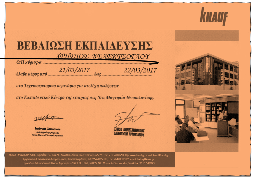 Η πιστοποιημένη γνώση μας εγγυάται την άρτια εφαρμογή της κατασκευής.